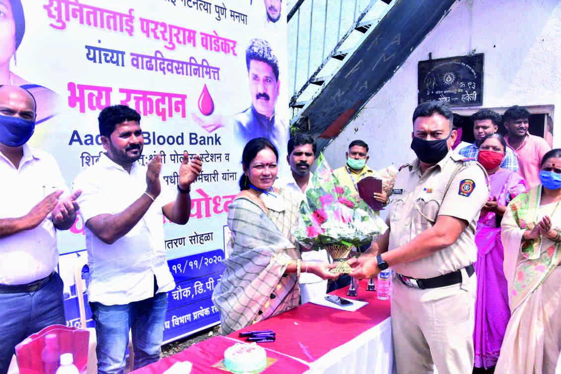 समाजसेवा आणि कृतज्ञतेची भावना सौ. सुनिता परशुराम वाडेकर यांच्या वाढदिवसाच्या औचित्याने समाजहिताचा एक प्रेरणादायी उपक्रम राबविण्यात आला. या दिवशी मोठ्या उत्साहात रक्तदान शिबीर आयोजित करण्यात आले, ज्यामध्ये अनेक स्वयंसेवक, कार्यकर्ते आणि नागरिकांनी सहभाग घेतला. समाजाप्रती आपली जबाबदारी ओळखत या शिबिरातून जीवनदायी रक्तदानाचे महत्त्व अधोरेखित झाले. याच कार्यक्रमात चतु:श्रृंगी पोलीस स्टेशनमधील पोलिस अधिकाऱ्यांचा ‘कोरोना योद्धा’ म्हणून सन्मान करण्यात आला. समाजाच्या सुरक्षिततेसाठी अहोरात्र लढणाऱ्या या पोलिसांना आदराचा मान देत सौ. सुनिताताईनी समाजातील सेवा आणि कृतज्ञतेचा सुंदर संदेश दिला. आयु. परशुराम वाडेकर यांच्या संकल्पनेतून राबवलेले हे उपक्रम संकटाच्या काळात आम्ही तुमच्यासोबत आहोत याची